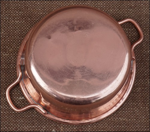 Vintage set of french copper cookware minature for doll house, 10 pieces made during the 1960's. Height of the largest pieces 3". The frying pan as a rust spain and the basin jam is slightly used as presented on the following pictures.
