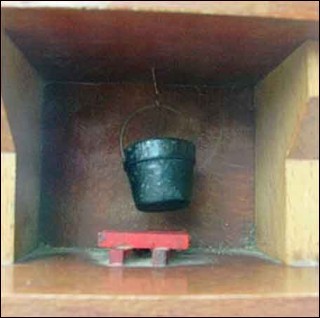 Country fire place for doll house with barometer and mantel clock two candleholders and stewpot. Good condition. 7"1/2 tall.
