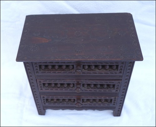 Doll House Miniature Chest of Drawer Turned Carved Wood Quimper