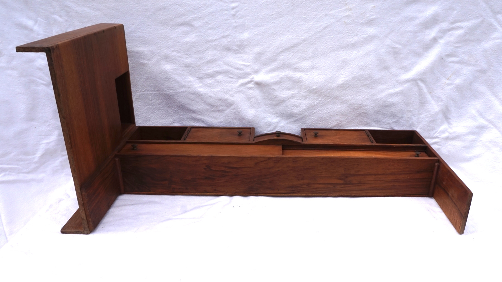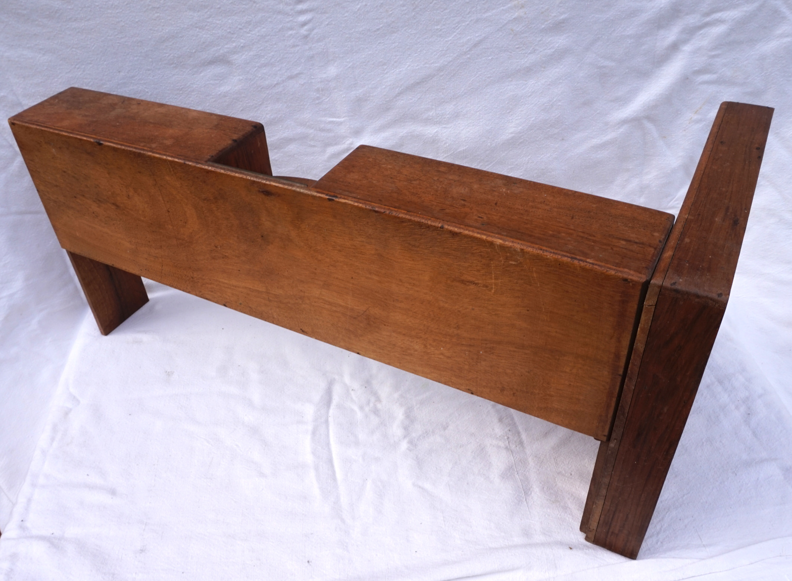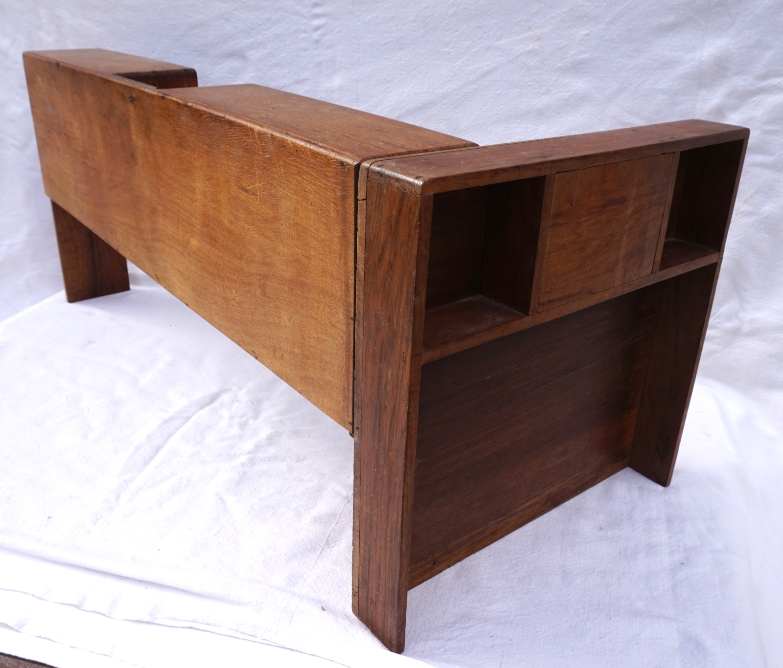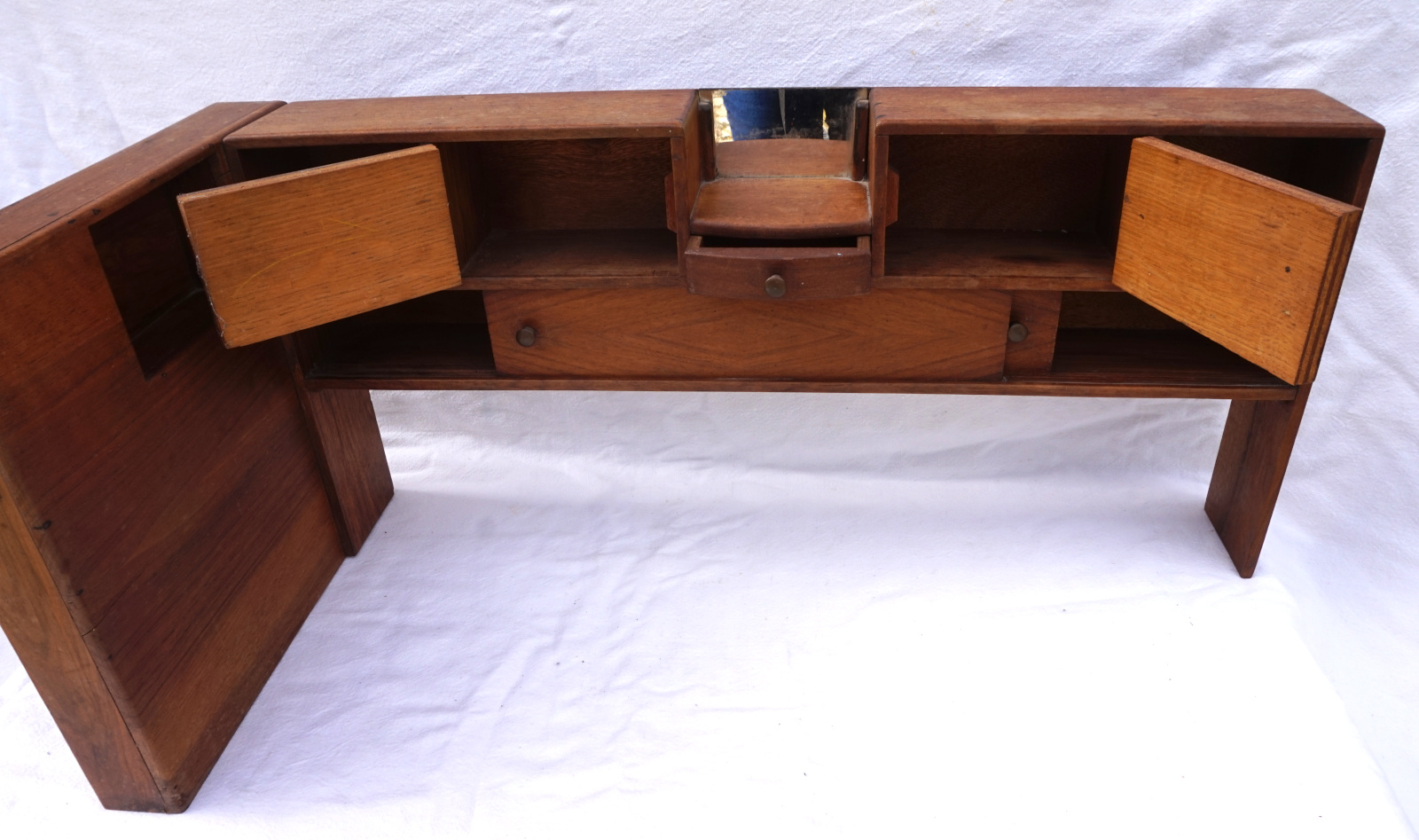 Tête de lit d'angle à tiroir et placards, vers 1960. Hauteur 29 cm, longueur 62.2 cm, profondeur 8.5 cm, pour le retour longueur 29.7 cm, profondeur 4.5 cm, poids 2.2 kg. Très bel état.