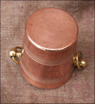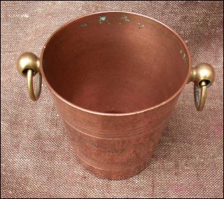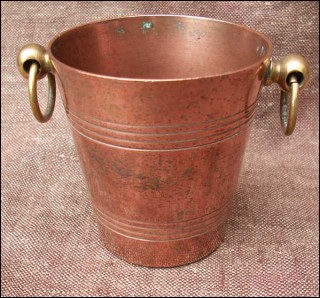 French copper miniature ice bucket for doll house  with ring handles in brass made around 1950. Perfect  condition. 3"1/8  high  3" diameter  without handles.