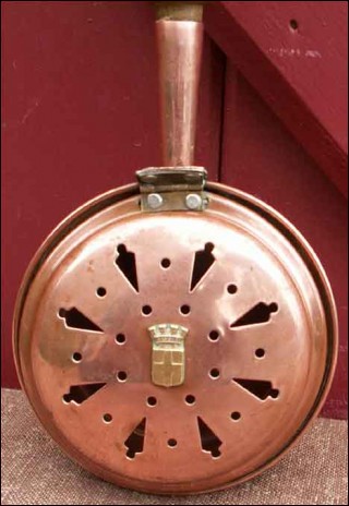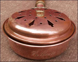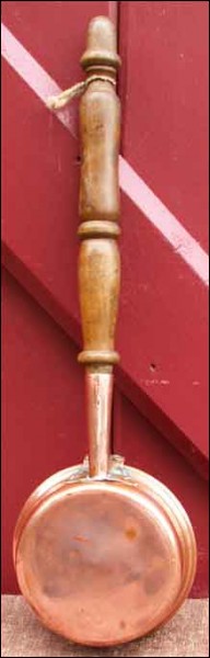 French country bed warmer for doll house in copper hand cuting with wooden handel and cost of arms of Savoie made in souvenir of Valloire engraving on the side. Good condition. 14"1/8 length 4"1/8 diameter.
