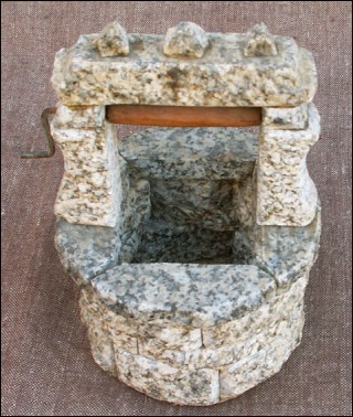 Rare Breton blue and yellow granite stone well for doll garden made in Quimper Britany. Perfect condition. 8 1/4" high 5 1/4" diameter.