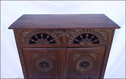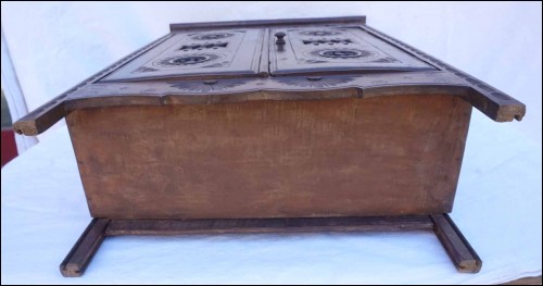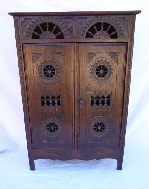 French cut carved wood armoire or wardrobe made near Quimper during the mid-century. 23 5/8" (60cm) height, 16 1/2" (41.5cm) width, 6 3/4" (16.8cm) depth. Good condition with beautiful patina as shown by the following pictures.