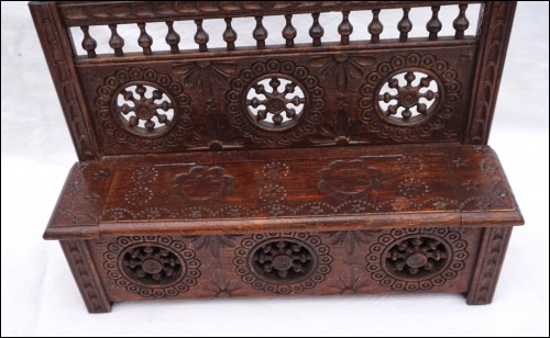 Quimper Vintage Doll Miniature Chest Bench Cut Carved Wood Brittany