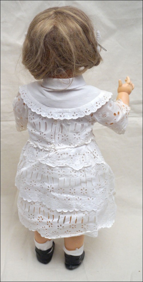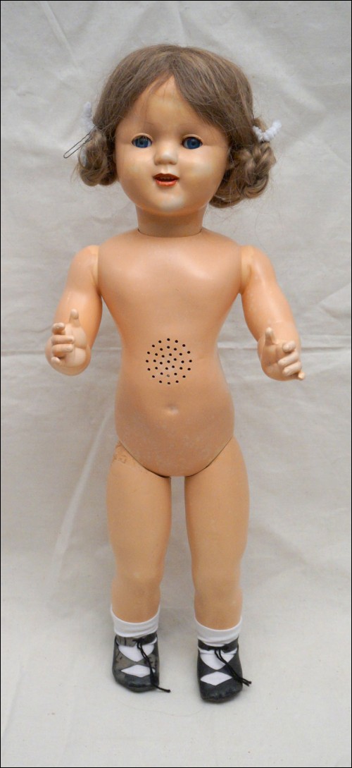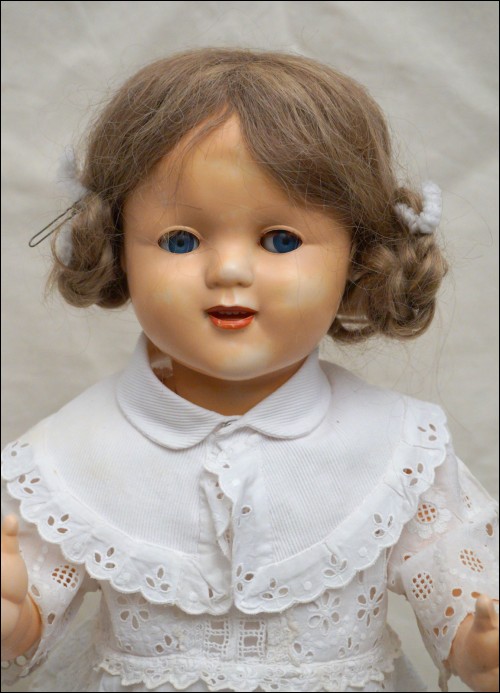 Poupée Raynal 2 yeux riboulant, le systeme sonore ne fonctionne plus, vers 1960. Bon état, les vétements sont d'origine. Hauteur 57 cm.