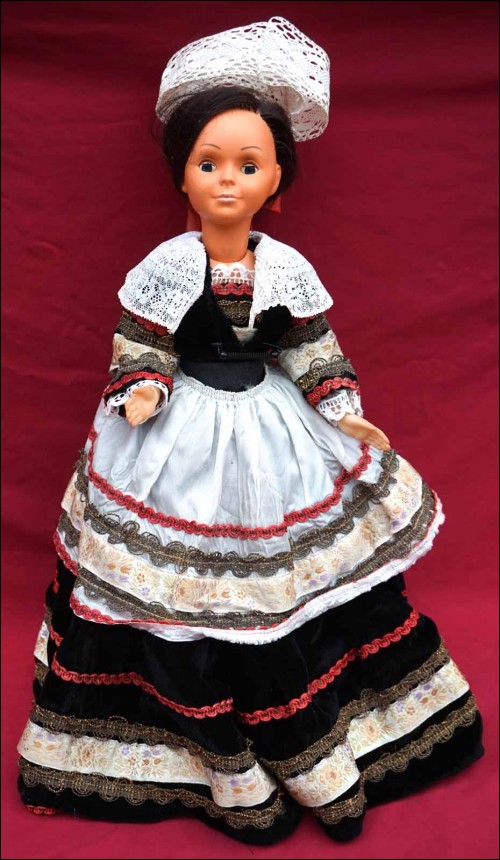 Vintage folk doll in traditional costume Breton made during the 1960's. 21 1/8" (53.5cm) tall. Beautiful condition no damage as shown by the following pictures.