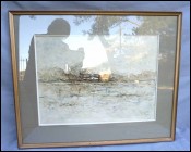 La Grande Briere Brittany Framed Watercolor Gauthier 1977