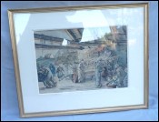 Cider Making Scratting Pressing Framed Watercolor Charles Esnoul Mid Century
