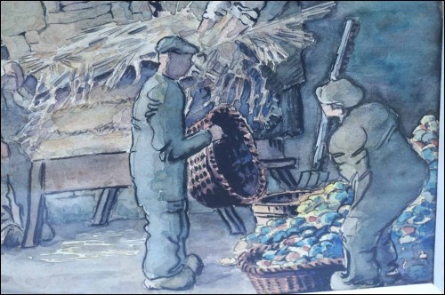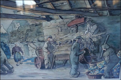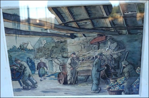 La fabrication du cidre, aquarelle encadré de Charles Esnoul (1910-1989). Signée en bas à gauche et au dos. Dimensions pour le cadre: 58,5 cm x 48 cm, pour la vue: 39,8 cm x 27,8 cm. Parfait état.