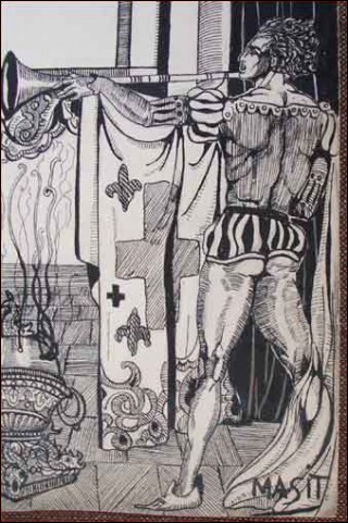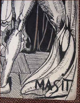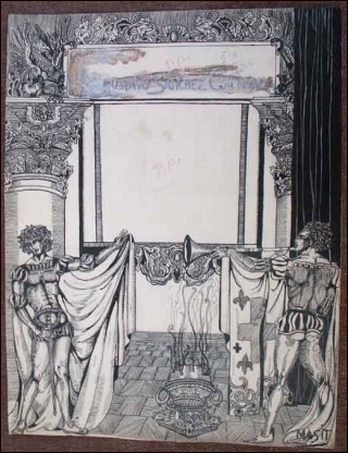 Original ink drawing for the cover of the book Conto a Espana Conto a Amaricana of Gustavo Sanchez Galarraga made by Angel Masit in 1920. It's signed in the right bottom with notes on the back. Good condition only a tear on the bottom as you can see on the pictures below. 12"5/8 by 9"3/4.