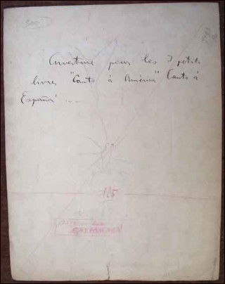 Maquette de couverture pour les trois petit livres: Conto à América, Conto à Espania ...qui ne feront q'un de Gustavo Sanchez Galarraga. Dessin original à l'encre d'Angel Masit 1920 signé en bas à droite. Une déchirure dans le bas. Hauteur 32 cm, largeur 24.5 cm.