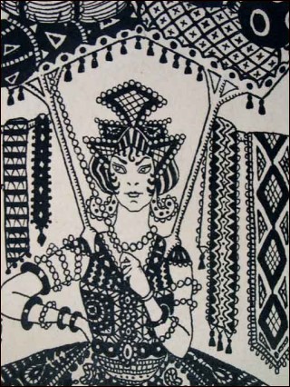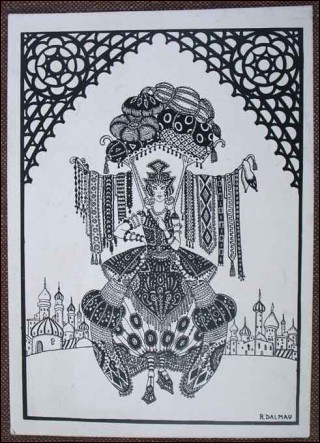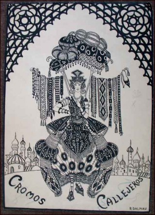 Maquette pour l'illustration de "Cromos callejeros". Sonates du poète cubain Sanchez Galarraga, 1920. Dessin à l'encre de R. Dalmau avec mentions de correction au dos, avec sa plaquette avant la lettre. Dessin: Hauteur 31.5 cm, largeur 22.2 cm.