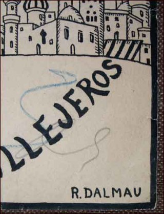 Original ink drawing for the cover of the book Cromos Callejeros of Gustavo Sanchez Galarraga made by r Dalmau in 1920. It's signed in the right bottom with notes on the back. Good condition. 12"3/8 by 8"3/4.