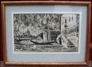 Drawing The Grand Canal Santa Maria della Salute Paul Bret 1954