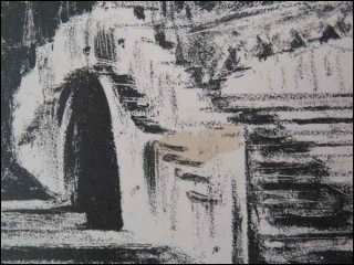 Paul Bret (FRENCH, 1902-1956) A view across the Grand Canal towards Santa Maria della Salute,Venice in 1954.Oil pastel drawing signed in left bottom corner and on the back with date and annotation by Paul Bret. The drawing is framed with glass. 6"7/8 by 10" for the drawing.