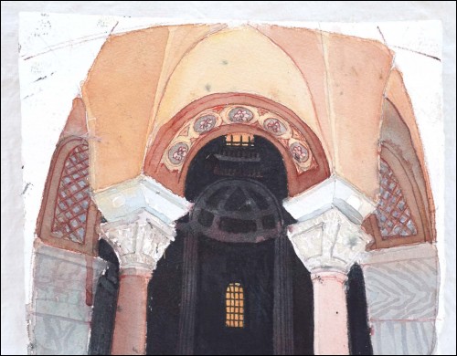San Vitale Ravenne Basilica Caroline White Gouache Painting