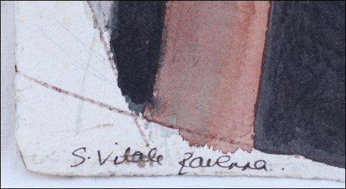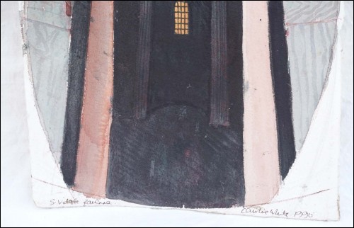 San Vitale Ravenne, Sant Vital Basilica, gouache painting made by Caroline White in 1990. Signed and dated on the bottom. 15 3/8" (39cm) height, 11 1/4" (28.5cm) width. Good condition a few small stains as shown by the following pictures.