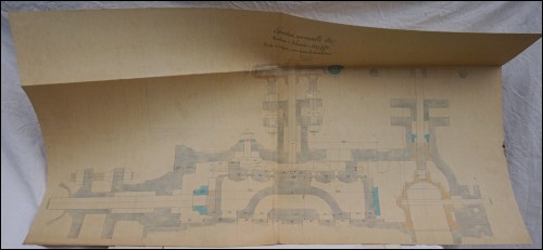 Sectional map project for steam engine beam 400-660/1500 with valvetrain made by H lecouteux engineer for the Universal Exhibition Paris in 1867. Stamped. 51 1/8" width 26 3/4" height. Provenance: collection of Francois Prosper Jacqmin (1820-1889), Student of the Ecole Polytechnique,engineer of Imperial school of Ponts et Chaussées, teacher and chairman in this school, member of the Jury, class 52, of the Paris Universal Exhibition in 1867. Good condition, cut corners,a few small tears as presented on the following pictures.