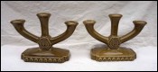 ST CLEMENT Pair Candlestick Rouen Decor Faience Late 19th C