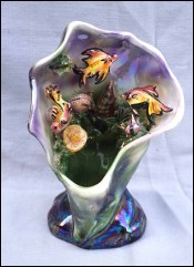 MONACO Kerina Hand Painted Faience Fish Shell Sea Life Vase