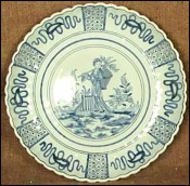 Scalloped Bowl Dish Blue Chinese Pattern Desvres 19th Century