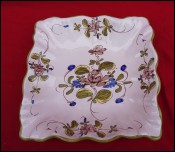 Matet Martres Tolosane French Hand Painted Faience Scalloped Square Dish
