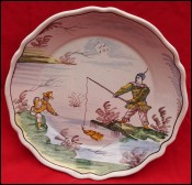 GIEN Blue Red Renaissance Transferware Faience Plate Late 19th C