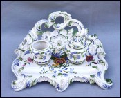 BASSANO Italian Pottery Inkwell Set Louis XV Style Hand Painted Signed
