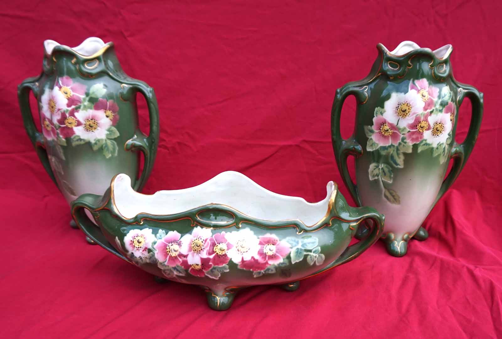 LUNEVILLE Keller Guerin Vases Jardiniere Garniture Set Faience