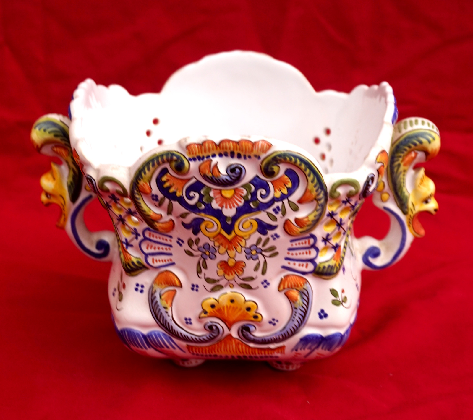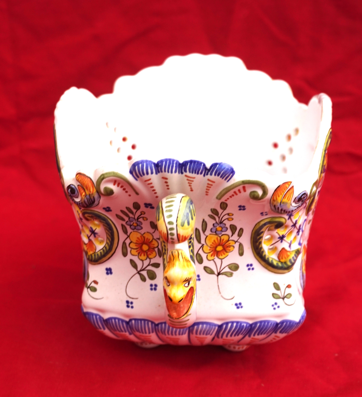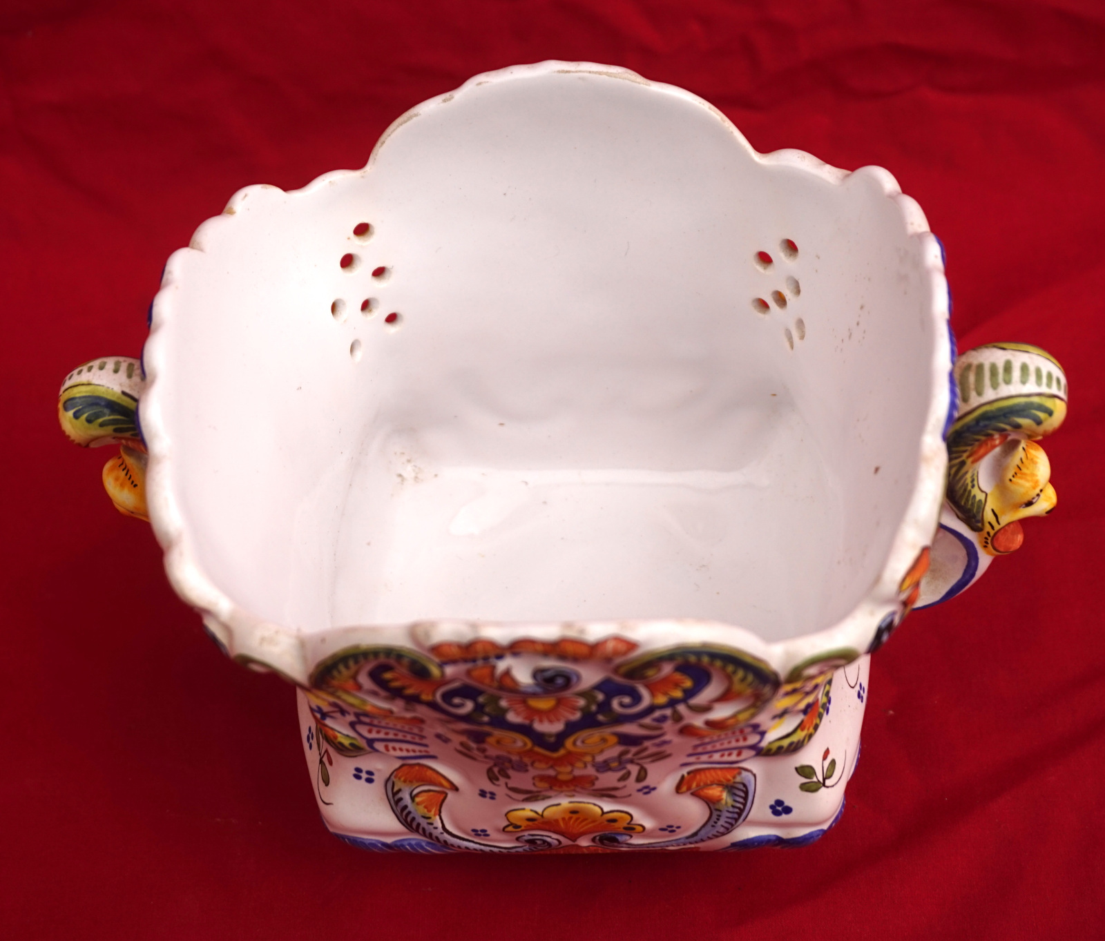 DESVRES Faience Square Planter Jardiniere Rouen Decor