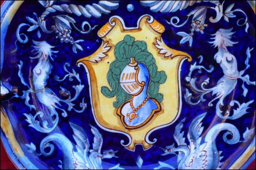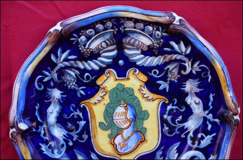 Faience Plate ST Clement Coat of Arms Knight Medallion Dark Blue 19th C