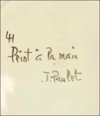 Revolutionary decorative plate made in the Marseille factory around 1970. The hand painting patterns depicts the famous rooster with flag in beak." I stay up for the Nation". Good condition it's signed in front with butterfly for the factory and on the back Jacques Paulet for the drawer. 9"1/2 diameter.Revolutionary decorative plate made in the Marseille factory around 1970. The hand painting patterns depicts the famous rooster with flag in beak." I stay up for the Nation". Good condition it's signed in front with butterfly for the factory and on the back Jacques Paulet for the drawer. 9"1/2 diameter.