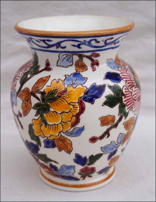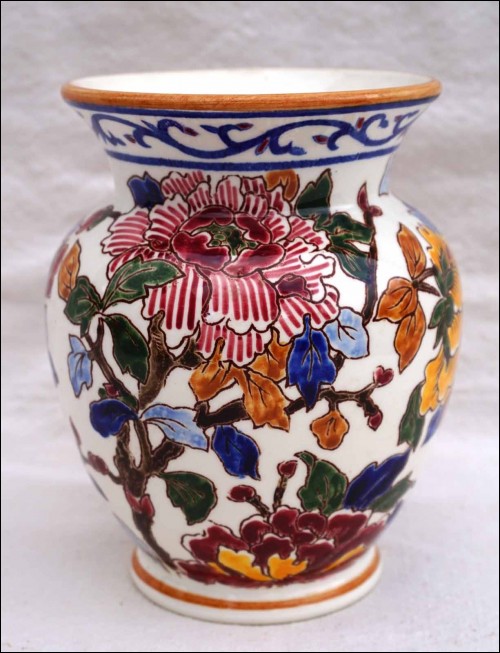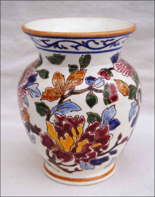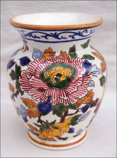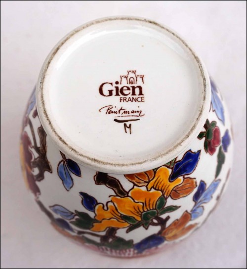 GIEN Pivoine Peony Pattern  French Hand Painted Faience Small Vase