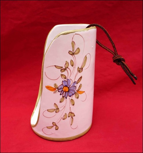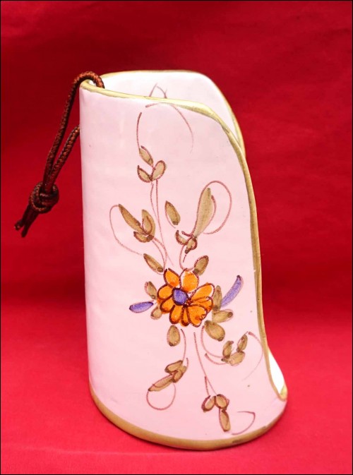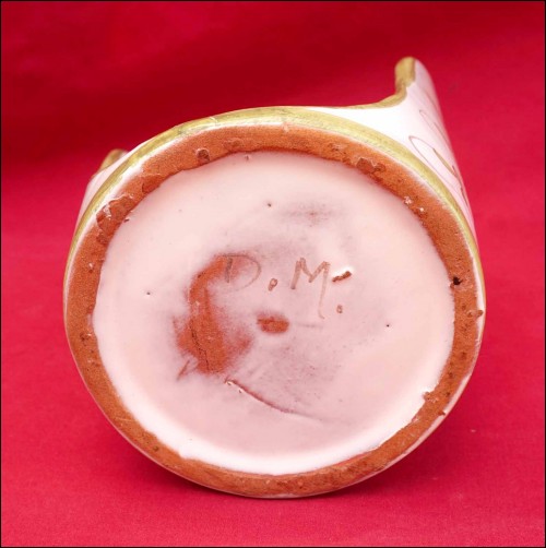 Bougeoir déambulateur en faience peinte à la main d'un oiseau et de fleurs par Martres Tolosane vers 1960. Hauteur 15 cm, diamètre 10.7 cm. Signé sur son fond. Parfait état.