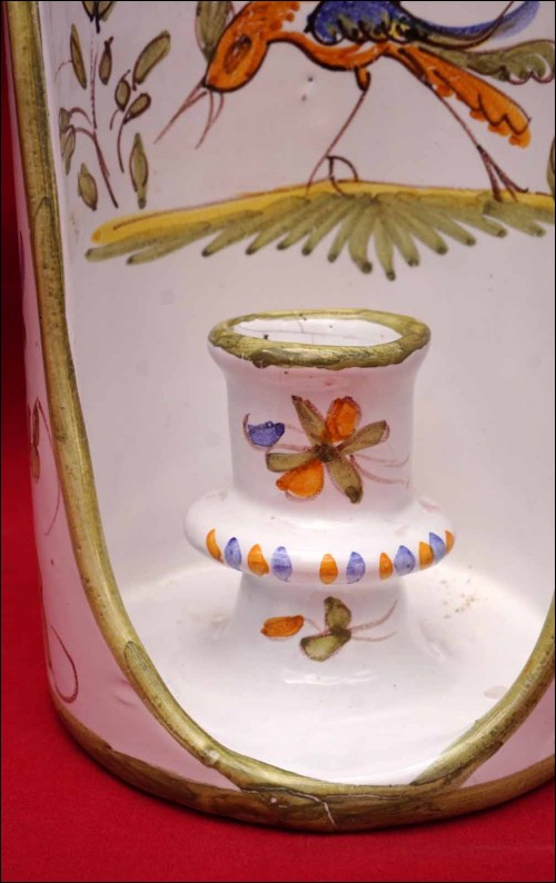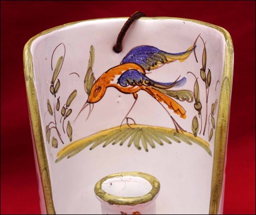 Vintage hand painted faience wall candle holder or sconce showing bird and flowers made by Martres Tolosan during the 1960's. It's signed on the back. 5 7/8" (15cm) height, 4 1/4" (10.7cm) diameter. Perfect condition as shown by the following pictures.