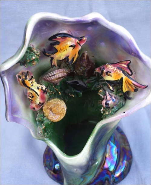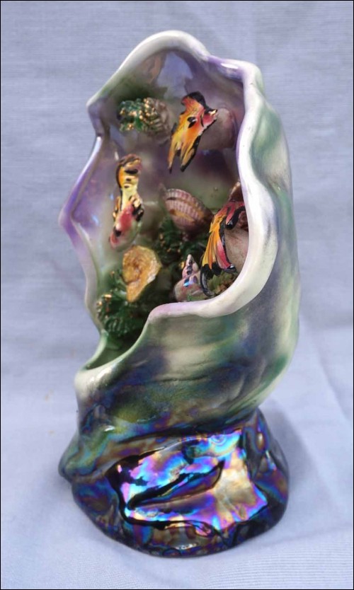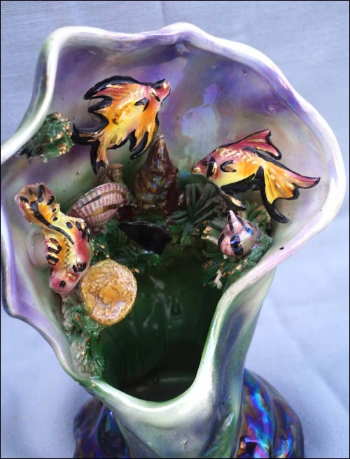 MONACO Kerina Hand Painted Faience Fish Shell Sea Life Vase