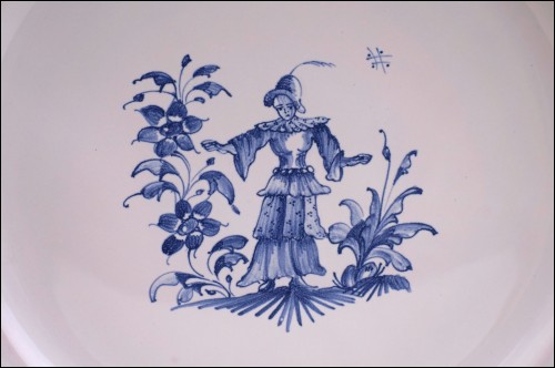 Moustiers Blue & White Faience Lady Flowers Stefani Mint