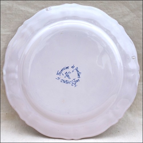 The Lady with flowers decorative plate in blue and white hand painted faience made by Jean Louis Stefani in St Jurs Moustiers late 20th century. 10" (25.5cm) diameter.It's signed on the back. Perfect condition as mint as presented on the following pictures.