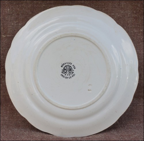 French faience transferware plate from the Language of flowers serie " The Wallflower, Promptness" made by Hipppolyte Boulenger in Choisy le roi near Paris during the end of 19th century. Good condition a few small yellowish in front as you can see on the pictures below. 6 1/2" diameter. It's signed on the back.