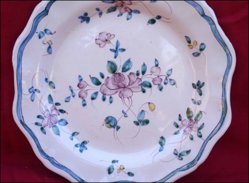 Provence Scalloped Plate Hand Painted Faience Flowers Marseille? 19th C