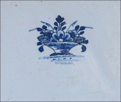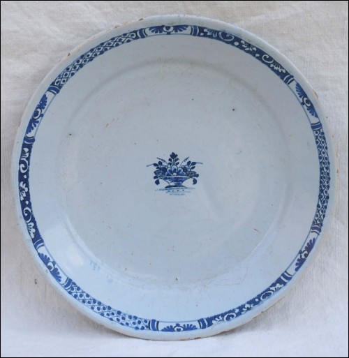 Rouen Blue White Hand Painted Faience Plate Floral Basket Late 18th