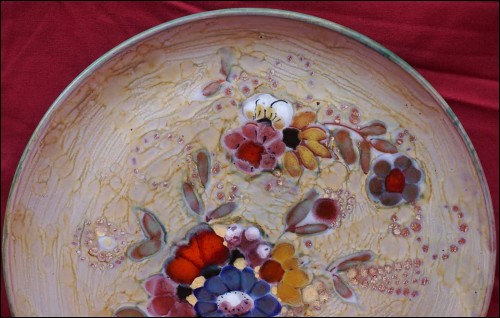 Vintage french hand painted faience plate showing flowers made by Francis in Vallauris during the 1970's. It's signed on the back with 2 holes for hanging. 9 1/4" (23.5cm) diameter. Perfect condition as shown by the following pictures.
