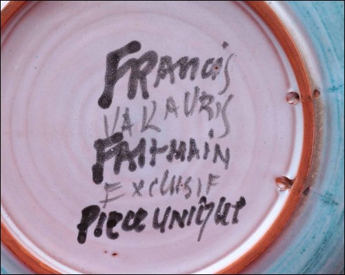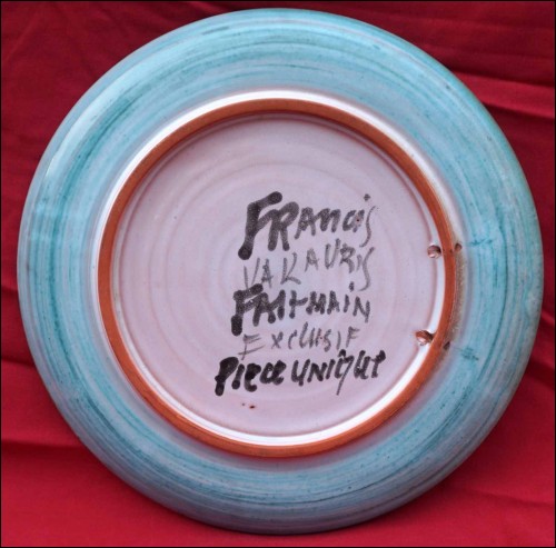 VALLAURIS Francis French Hand Painted Faience Flower Plate