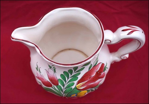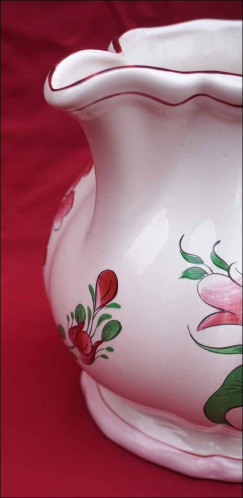 Vintage ST Clement Hand Painted Faience Pitcher Flowers 1960's