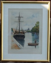 Channel in the City A Brudieux Framed Etching Signed