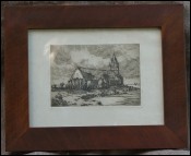 Old Timbered Houses Lisieux Normandy Framed Wood Engraving Print Signed Bernard