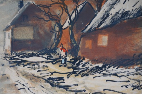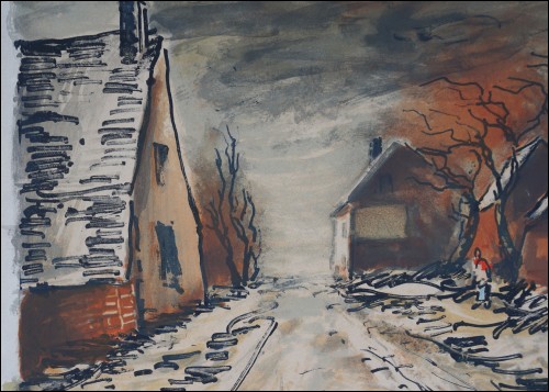 Landscape orginal lithograph Maurice De Vlaminck by Mourlot Freres Paris in 1958. Two stains, one folded corner and a small tear on the right side as you can see on the pictures below. 22 7/8" width 17 3/4" high.
