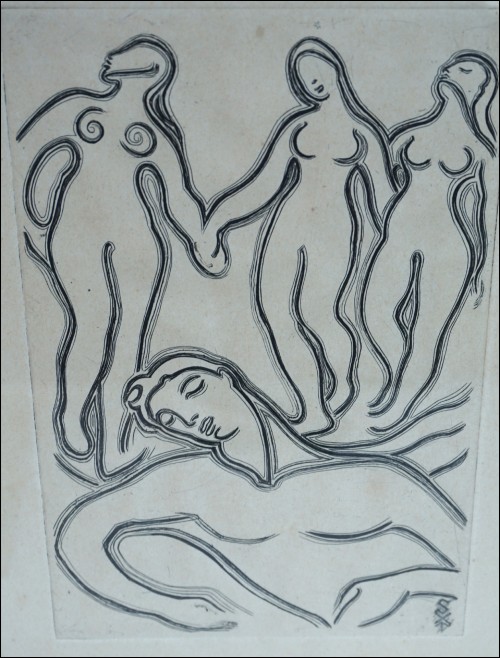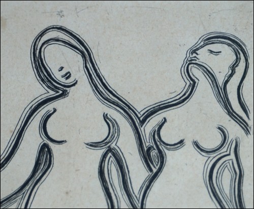 Estampe pour l'illustration de recueil de Poésies de Violettes, par Suzanne Tourte (1904-1979), imprimerie nationale 1950. Bois gravé et taille-douce. Tirée de l'édition originale, hauteur 24,5 cm, largeur 18,5 cm. Bel état, une tache à 3 heures.