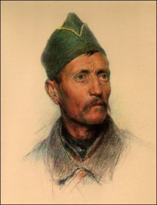 Portrait of soldier of French infantry (1915-1917) from The soldiers of the Allied armies during the WWI etching of Eugene Burnand artiste printed Crete in 1922. Perfect condition.Dimensions of the sheet 11"1/4 by 15"1/2 and for the etching 9"1/2 by 6"3/4. Eugene Burnand (Captain Robert) swiss artist born in Moudon the 08/30/1850 and dead in Paris the 02/04/1921.